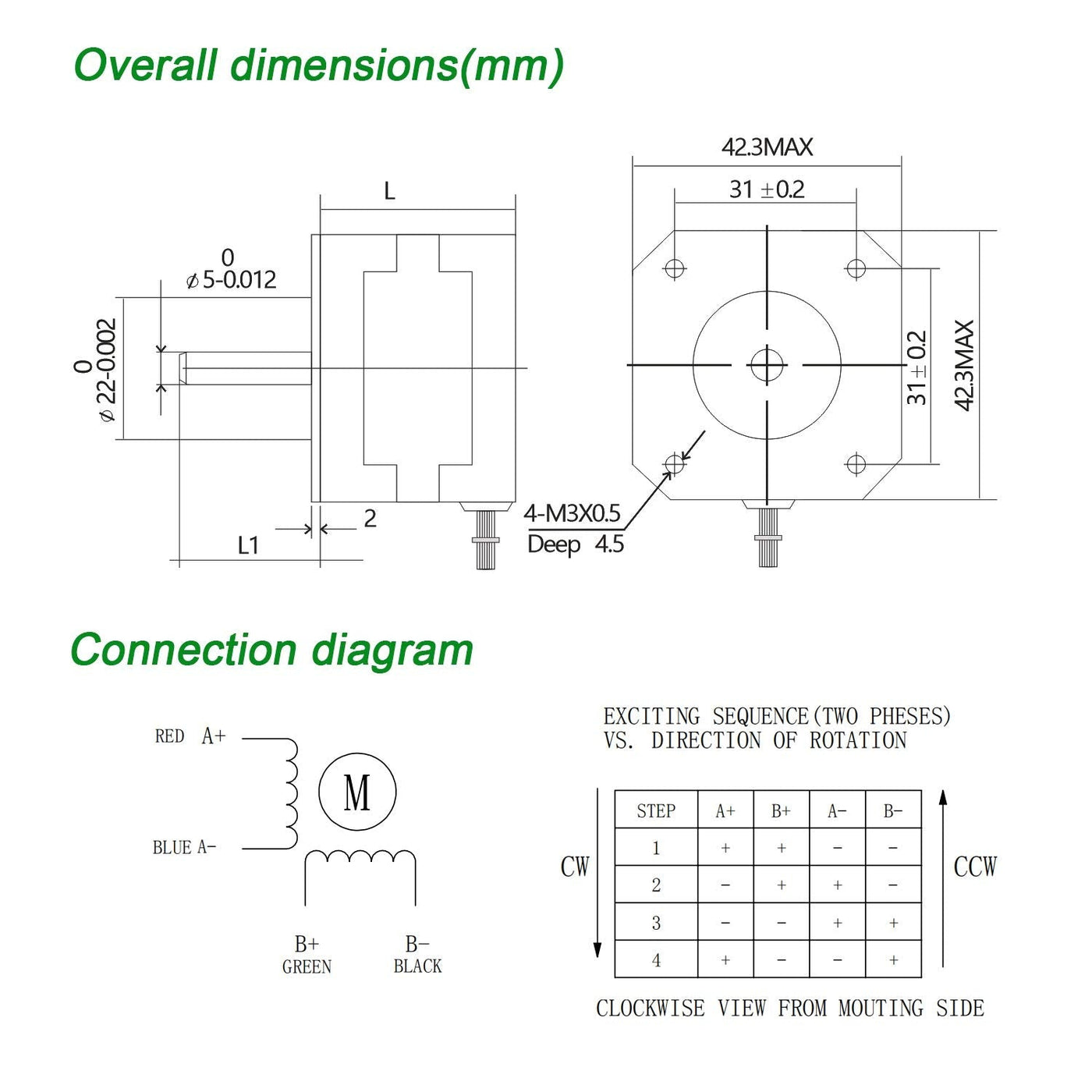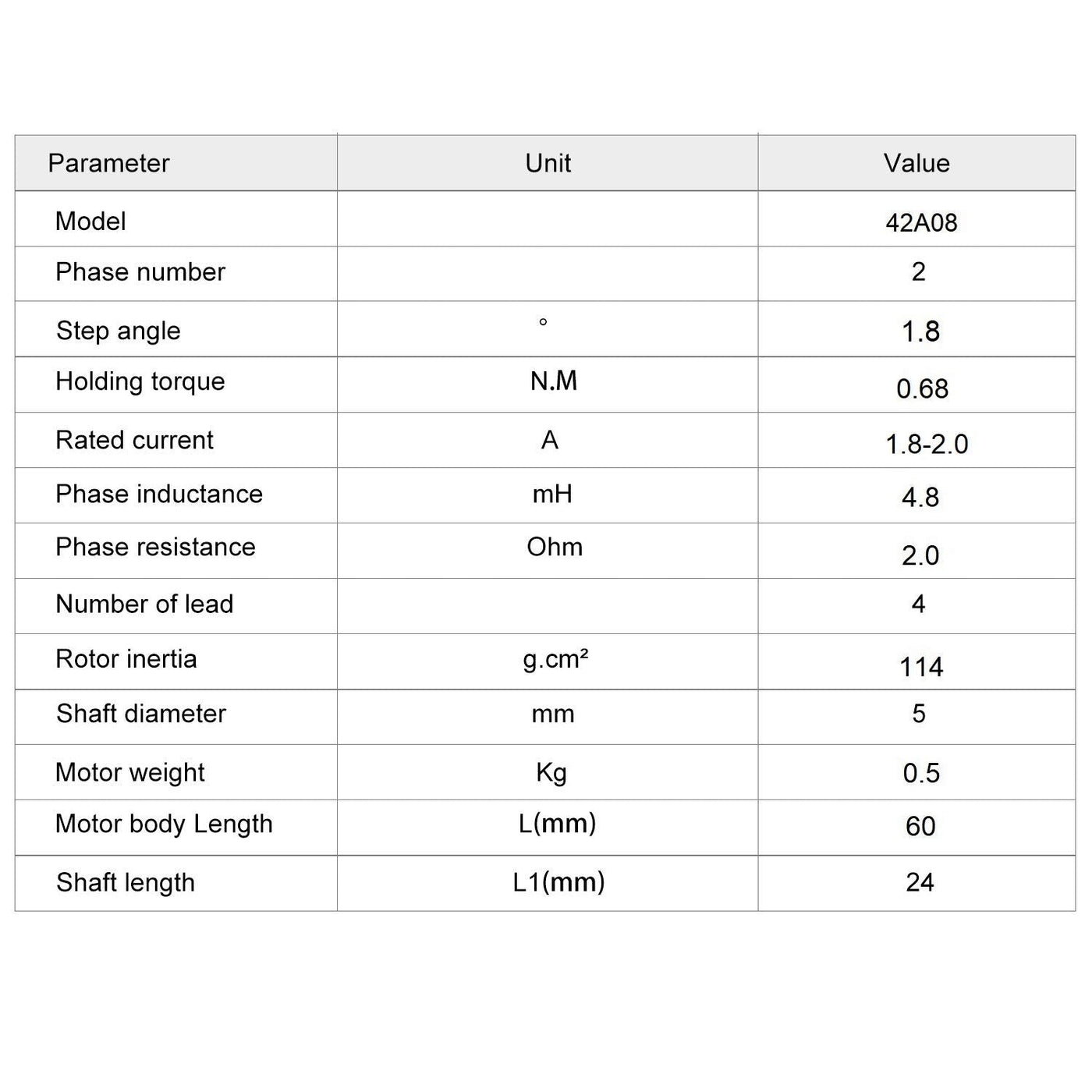 - SPECIFICATION: Phase resistance 2.0ohms, size 42*42*60mm, shaft diameter 5mm, shaft length 24mm