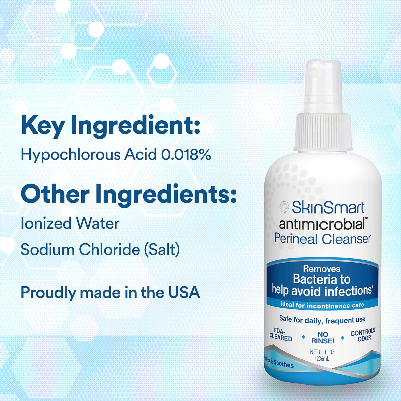 SkinSmart Antimicrobial Perineal Cleanser, Ideal for Incontinence Care and Postpartum, Removes Bacteria, 8 oz Spray