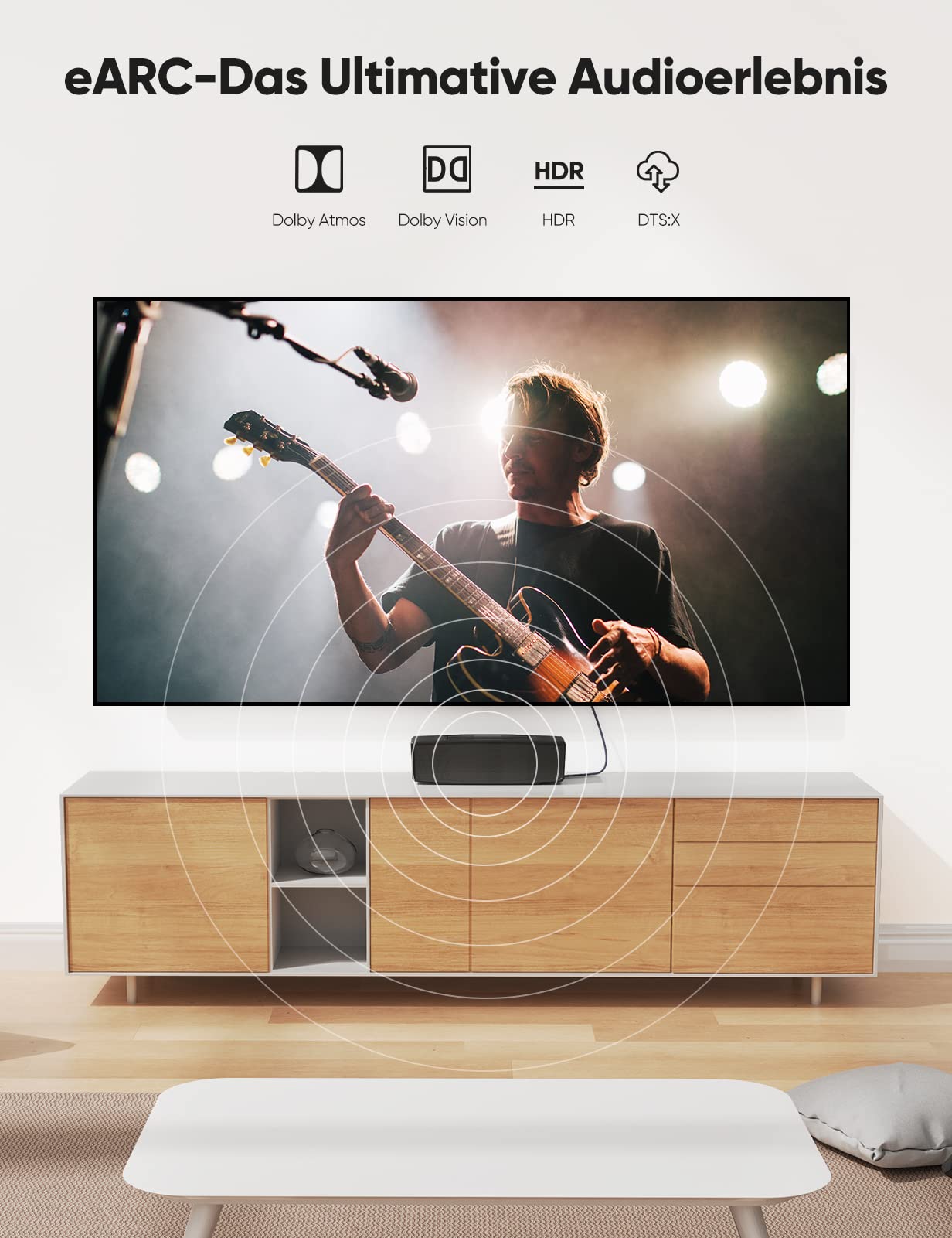 • Top technology -- 8K@60Hz HDMI cableThis 8K HDMI cable 2M uses the latest technology and is with 8K@60Hz and 4K@120Hz compatible to clearly display every particle and accurately process every signal source. With 8K HDMI's unique dynamic HDR and 12-bit color processing technology, every image in every scene has more ideal depth, brightness, details, contrast and a wider color gamut.