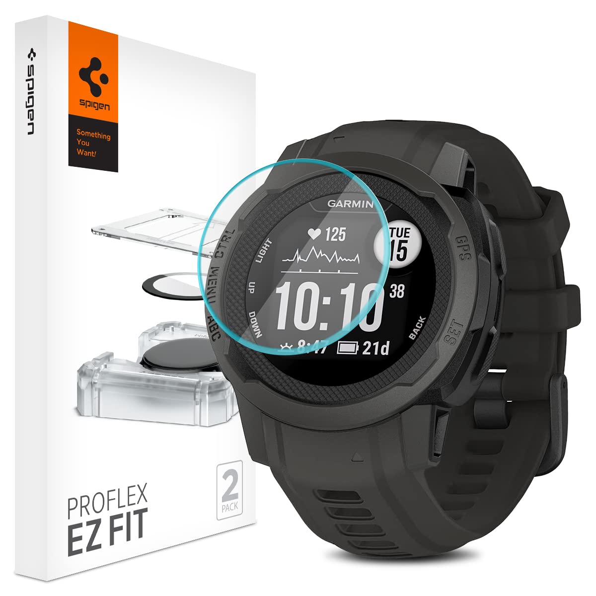 Spigen Tempered Glass Screen Protector [GlasTR EZ FIT] designed for Garmin Instinct 2S (40mm) - 2 Pack
