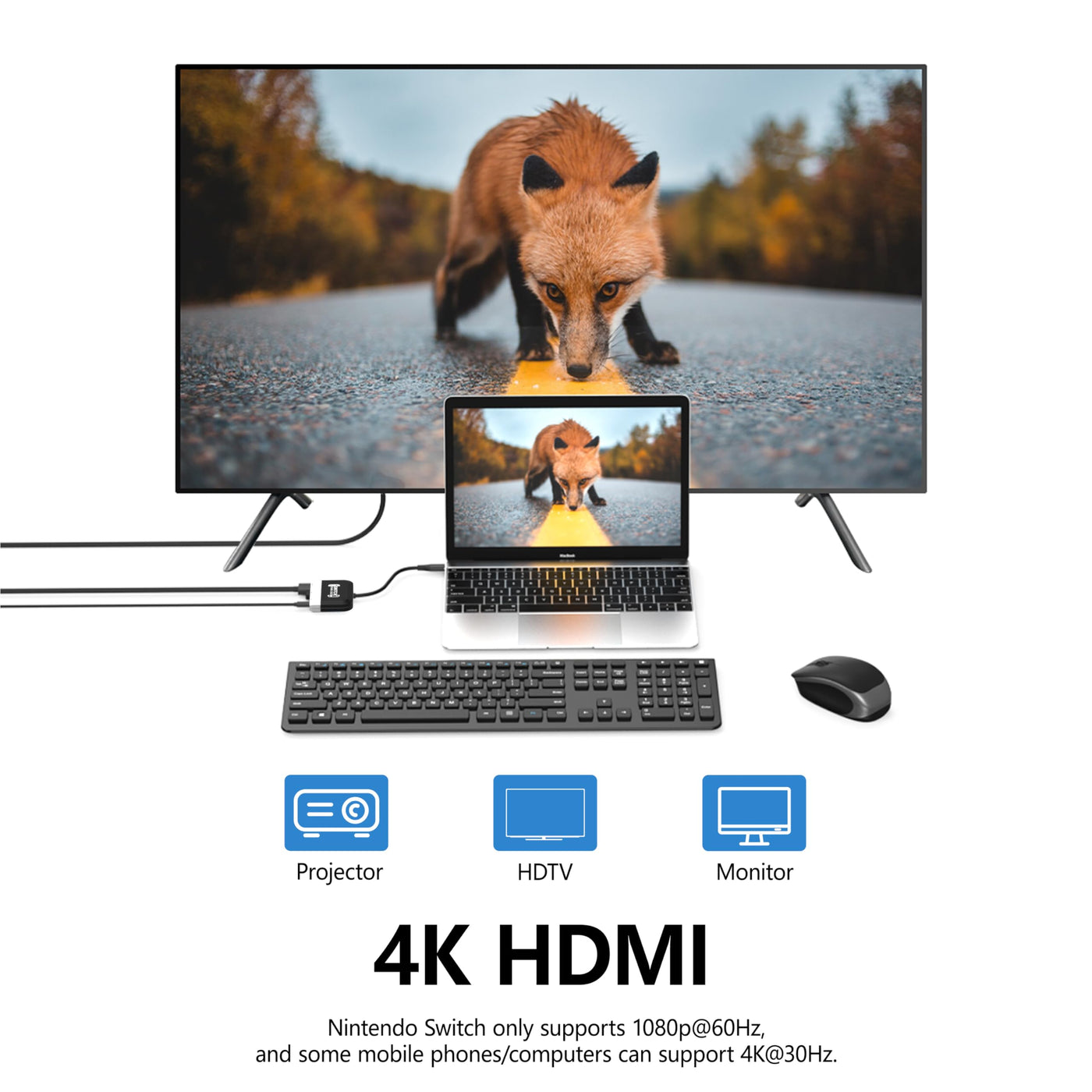 - Plug & Play: No external driver required, easy to use, just plug in HDMI cable(NOT Included), original power adapter and Switch / Switch OLED console, wait about 5-10 seconds and then you can enjoy your games with a bigger screen and clearer picture, supports resolution up to 4K@30Hz (NOTE: The Switch itself ONLY supports 1080P, can NOT reach 4K.). Perfect color matching, the color of the switch docking station is similar to the Switch console, which is more coordinated and eye-catching.