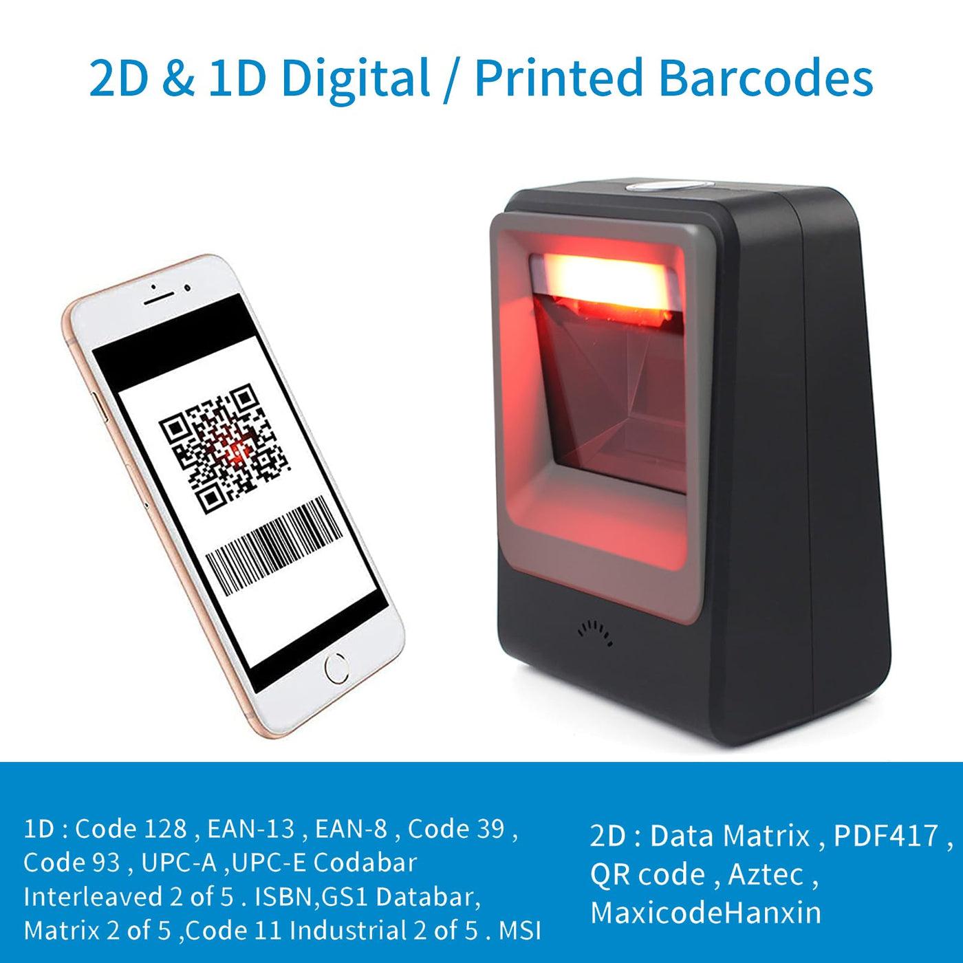 - (1)Unmatched Scanning Performance -- This device has completely changed how we handle barcodes in our store. It scans every type of bar code1D, 2D, QRwithout any hassle! Compatible UPC/EAN, UPC-A, UPC-E, Code39, ISBN, Interleaved 2 of 5, Code93, Code 128, Codabar, and PDF417, Data Matrix, etc barcode . Ive even tested it on damaged and distorted codes, and it works like a charm every time. The accuracy and sensitivity are just phenomenal.