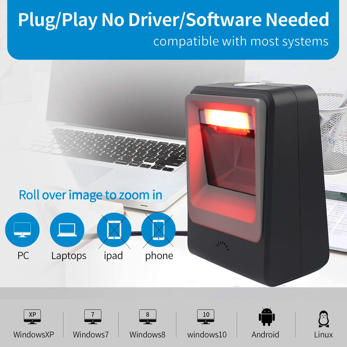 - (2)User-Friendly Setup -- Symcode barcode scanner literally took me seconds to set up; just plug it into my PC via USB, and voilaready to scan! Theres no software installation required which means no headaches trying to get things running smoothly. It can easily work with windows XP/7/8/10, Mac OS, Linux, etc system. It's a good helpful tool for inventory management and pos system.
