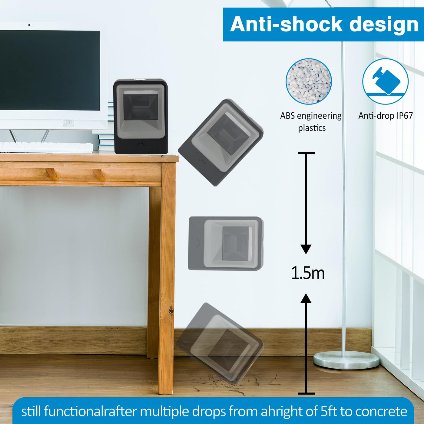 - (4)Durable Design with Great Stability -- I was impressed by how sturdy this Barcode Scanner feels on my deskthe anti-slip base keeps it in place while scanning, no matter how many items I'm processing at once. Plus, its ability to withstand drops from nearly nine feet gives me peace of mind. Given its performance and durability compared to other scanners I've used before , this barcode scanner is an incredible deal. It has improved our overall efficiency tremendously .