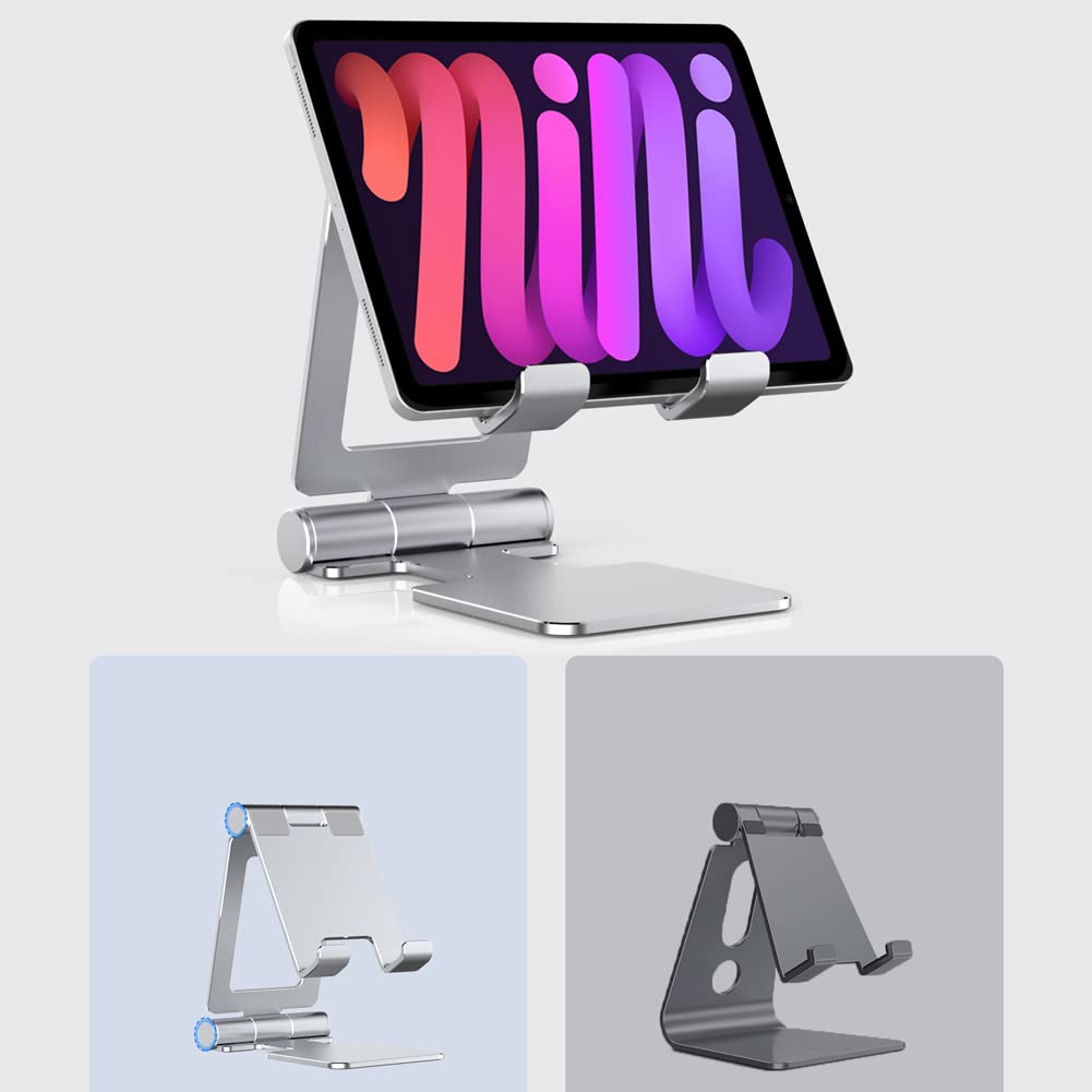 Tablet Stand, Anozer Adjustable & Foldable Aluminium Desktop iPad Stand,Compatible with 2021 iPad Mini 6 5 4, iPad 10.2, iPad Pro 12.9/11, iPad Air, Portable Monitor, Surface Pro, Phones (4-13 inch)