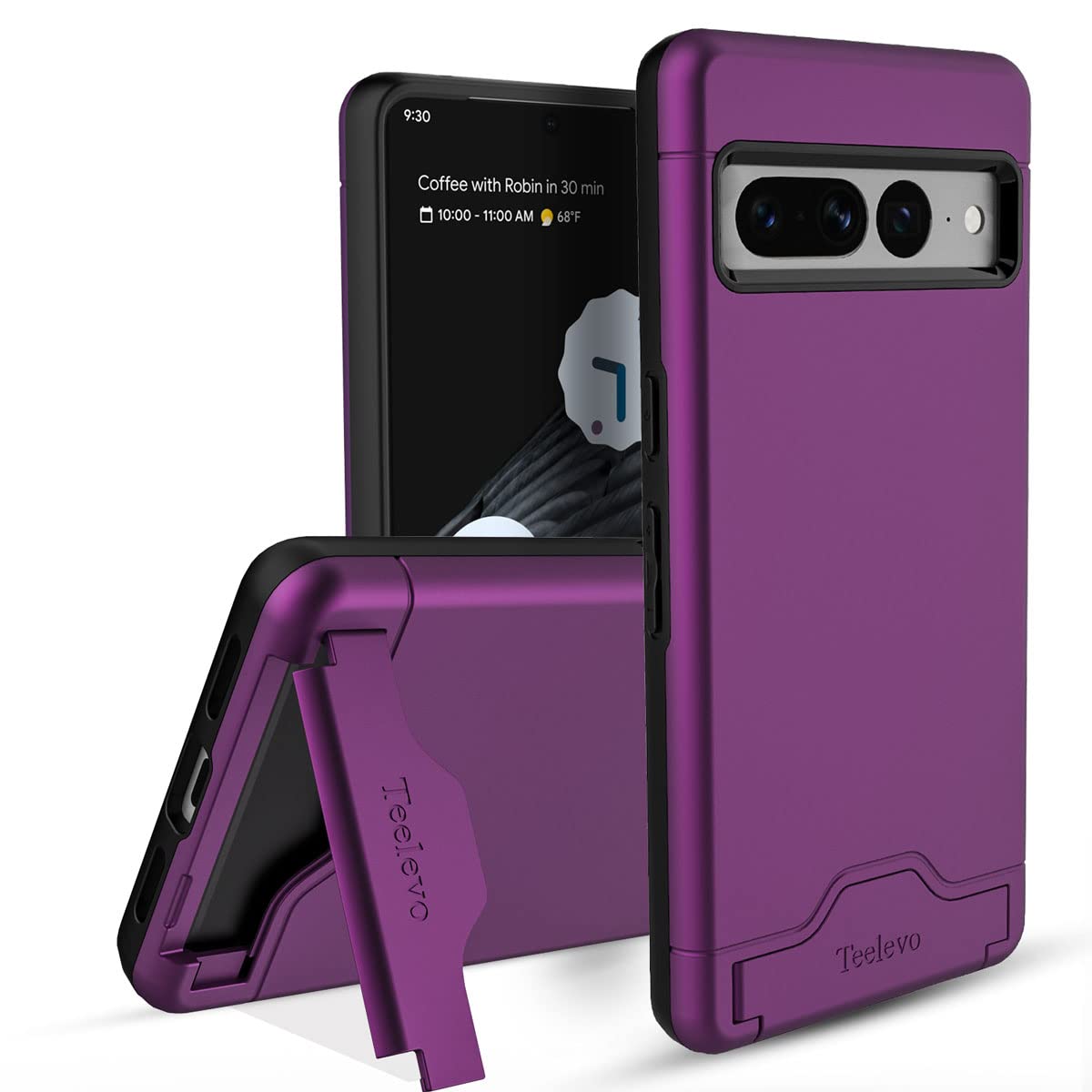 Convenient Kickstand Made for hands-free viewing Read more 2-Card Storage Stores up to 2 cards Read more Drop Protection Keeps your phone safe and protected Precise Cutouts Allow easy access to all ports, buttons, and camera Secure Closure Hidden card slot securely stores and seals your cards Read more Teelevo Wallet Case for Google Pixel 7 Pro (2022) Hidden card slot stores up to 2 cardsIntegrated Kickstand for hands-free viewingDual layered protection made of a TPU cover and PC backPrecise cutouts allow easy access to all ports, buttons, and camera