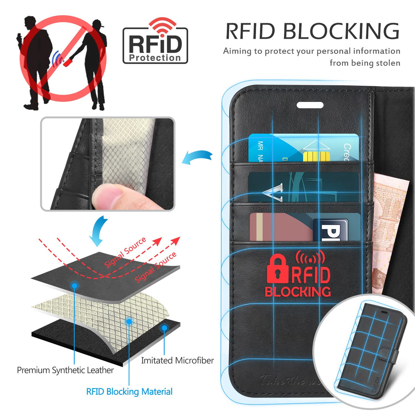 TUCCH iPhone 11 Case, iPhone 11 Wallet Case with [RFID Blocking] Card Slots Stand Magnetic Closure, Protective PU Leather [Shockproof TPU] Flip Cover Compatible with iPhone 11 (2019 6.1 inch), Black