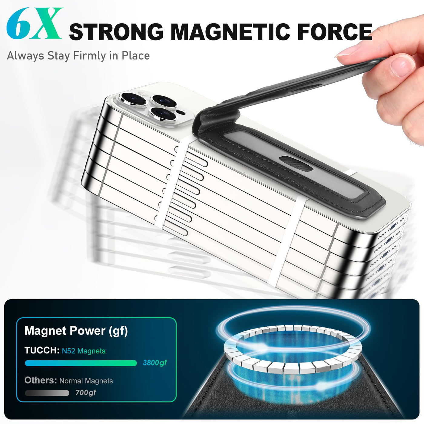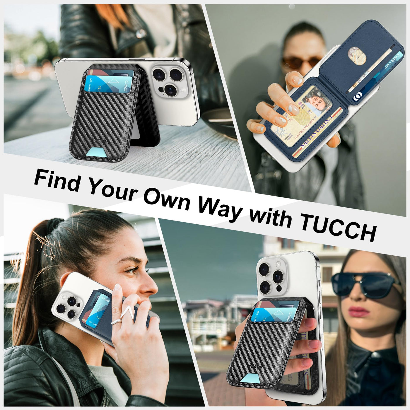 - CompatibilityThis phone wallet only compatible with 1 Devices iPhone 15/14/13/12 series models; 2 Official magnetic cases; 3 TUCCH magnetic basic case. DO NOT compatible with any other phone models and cases, especially non-magnetic cases. The magnetic card holder is made of high-quality PU leather material. Not only has good wear resistance and skin-friendly feel, but also has a classic and stylish appearance