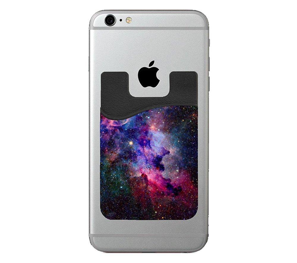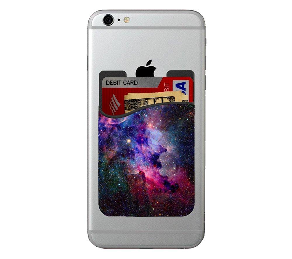 (Two) Galaxy cell phone stick on wallet card holder phone pocket for iPhone, Android and all smartphones.