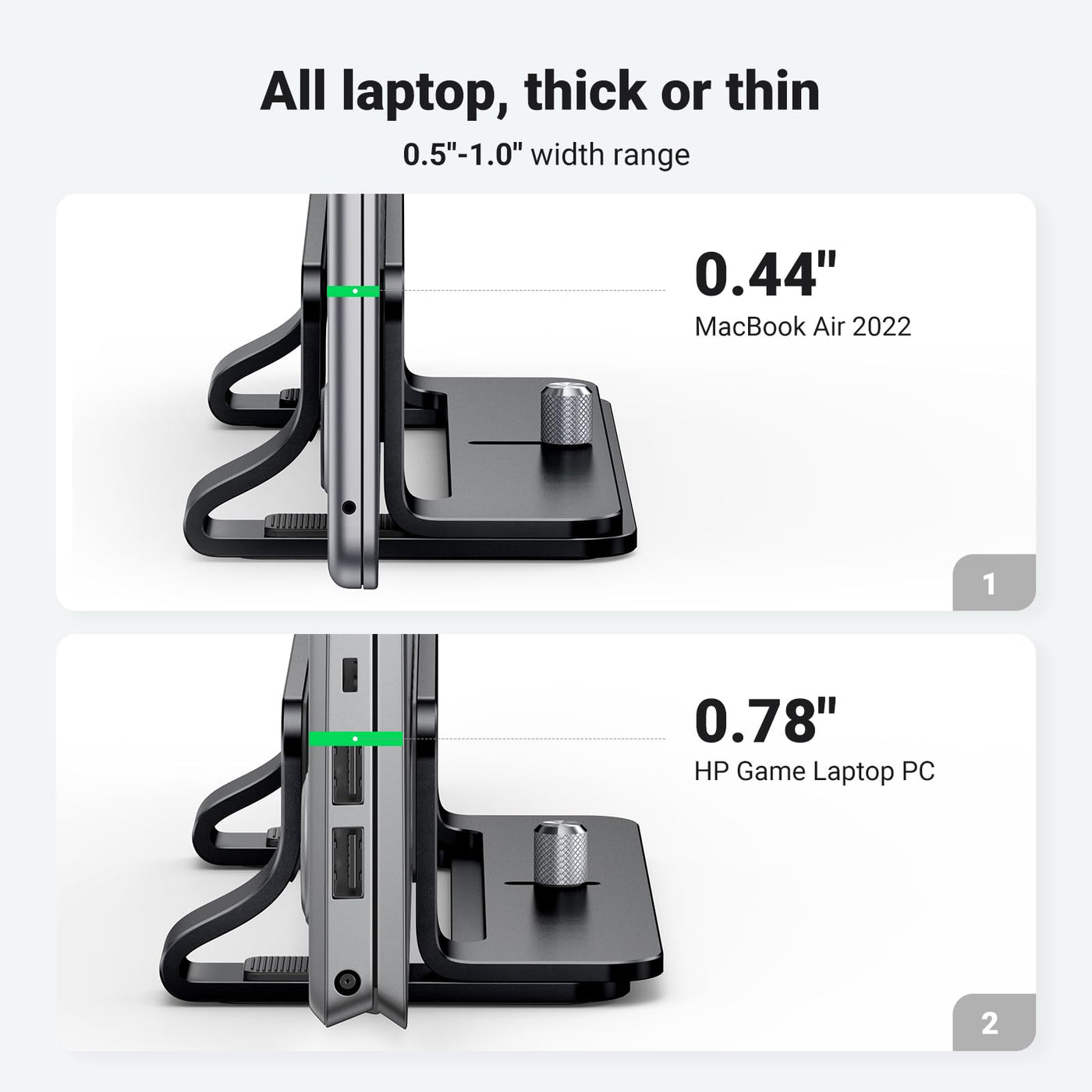 - Space-Saving Design: UGREEN vertical laptop stand takes less desk space significantly compared to laying your laptop flat. It effectively maximizes your desk area for other tasks by holding your laptop vertically for storage. A great tool for storing your laptop when you're using a monitor or keyboard.