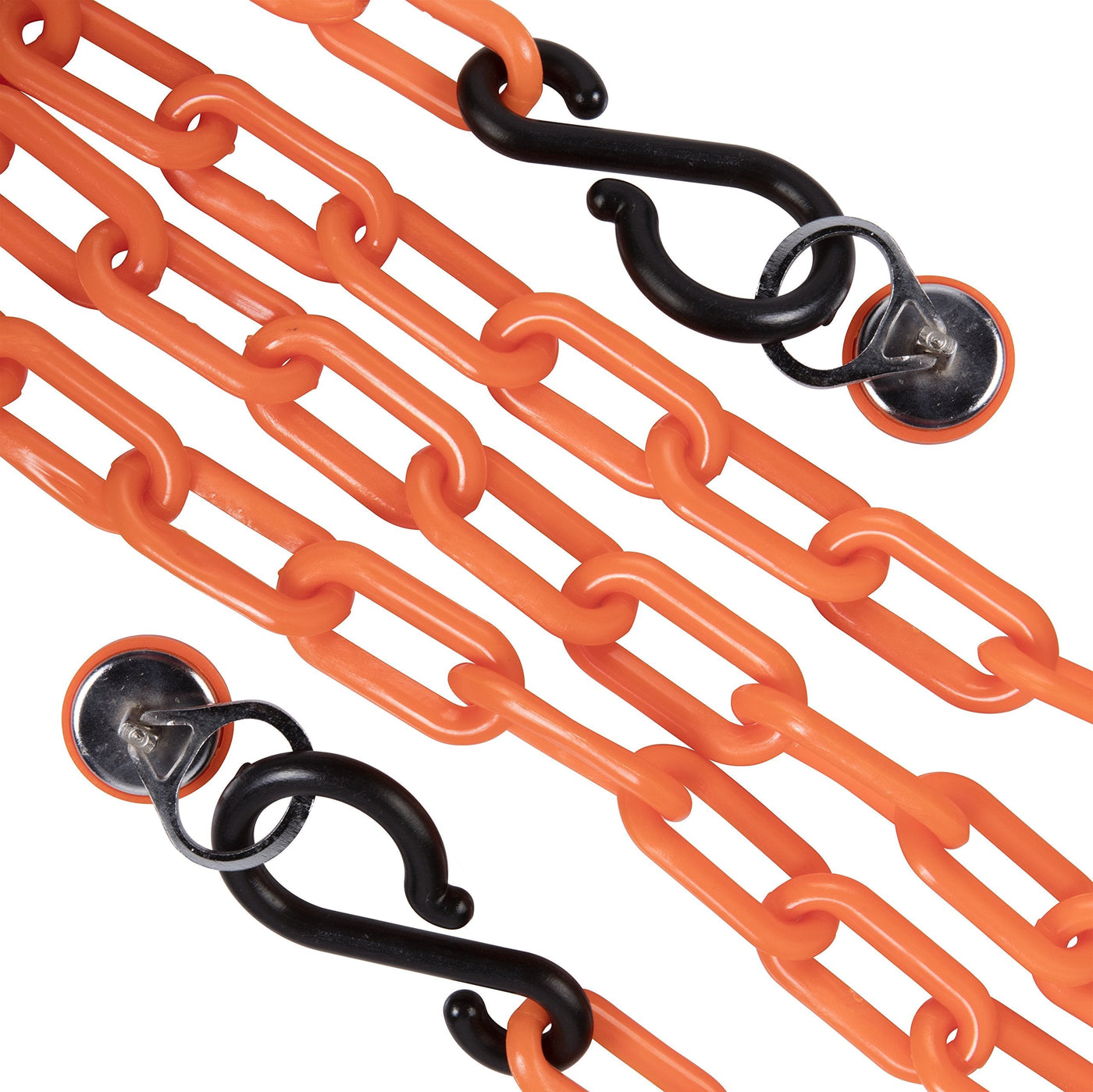- Includes (2) magnetic wall rings, 10 feet of orange 2-inch chain, and (2) S-hooks
