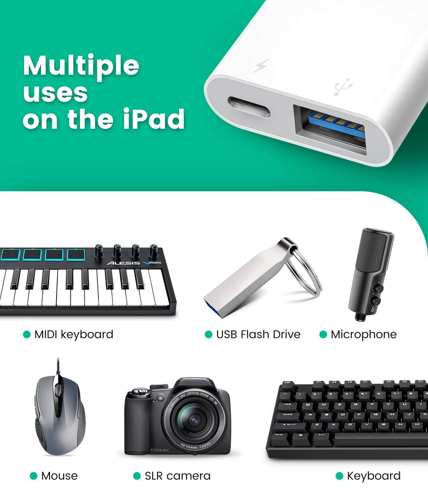 - Plug and PlayThe iPad USB adapter does not require network and third-party apps,plug and play.