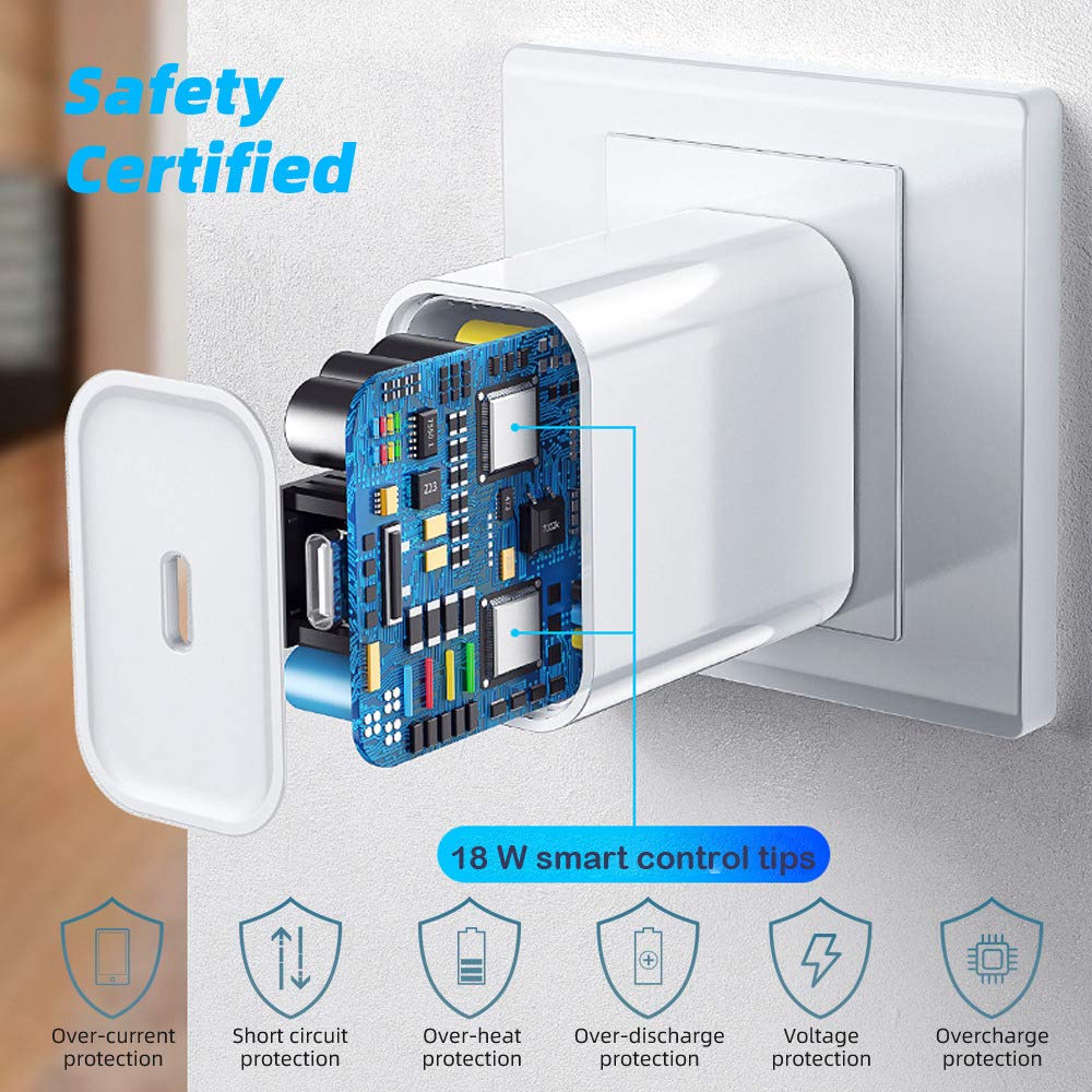 18W USB C Fast Charger with 3ft USB C to C Cable, brings you new high-speed lifestyle 1.Implements advanced USB C charging technology to deliver never- before-seen high-speed charging, you will never go back to your crappy old default adapter again. 2.Match UL safety standard to protect your laptop or cellphone from over-load voltage/current, short current and high-temperature. 3.Included a 3.3ft/1m USB C-C charging cable let you can work and charge your laptop anywhere, support 480Mbps data syncing. 4.Optimized Charging iPad Pro 12.9", 11" 2020/2018, Sumsung Galaxy, Google Pixel, LG, Motorola and other USB Type C port smartphones. Power Delivery USB C Fast Charger Full charging iPad Pro 12.9 as the example, save over 1.5 hours A. Eaxxfly USB C charger output: 18W , Full charging time: 3 hours B. Standard USB charger output: 12W, Full charging time: 4.5 hours Compatible device model -For iPad Pro: ONLY iPad Pro 12.9" 4th Gen (2020), iPad Pro 12.9" 3rd Gen (2018), iPad Pro 11" 4th Gen (2020), iPad Pro 11" 3rd Gen (2018) which is USB C port. -For Google: Pixel, Pixel 2, Pixel 3, Pixel 4, Pixel 5, Pixel XL, Pixel 2XL, Pixel 3XL, Pixel 4XL, Pixel 3A, Pixel 3A XL... -For Samsung: Galaxy S10, S10+, S10e, S9, S9+ Plus, S8, S8+ Plus/Active, Note 9, Note 8, Note 7... -For LG: G7 Thing, G6, G5, Stylo 4, V20, V30, V35, V30S, V40 ThinQ Plus... -For Motorola: Moto G6, G6 Plus, G7 Plus, G7 Power, Moto X4, Moto Z4, Z3, Z3 Play, Z2 Force, Z2 Play, Moto Z, Z Play, Z Force, Z Force Droid, Turbo Charger...