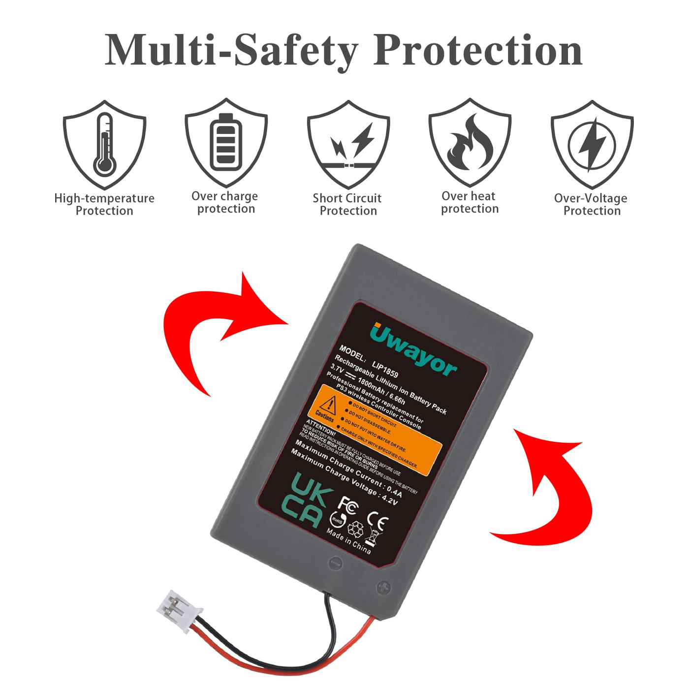 - Battery TypeRechargeable PS3 Controller Battery; Capacity: 1800mAh/6.66Wh; Voltage: 3.7V; Premium Grade A cell for longer battery life with no memory effect, no pollution, and low self-discharge.