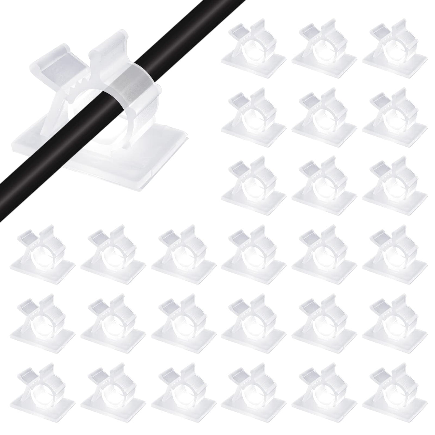Viaky 30 Pcs Transparent Adjustable Cables Clips Self Adhesive Backed Cord Management Great Cable Clips To Keep Your Cables Away From Chaos And Mess NOTE!! --For working effectively, please choose the best holder on smooth and dry surface to stick the cable clips, do not stick it on matte or uneven wall; --To avoid any damage or ugly mark on the surface,Please don't move the clips optionally because of strong adhensive; --Do not place the heavy cables to avoid exceeding their load-bearing capacity.In order to improve performance and effectiveness, you can use more cable clamps on the cables. SPECIFICATION: - Size: 25mm L x 19mm W (0.98'' x 0.75'') - Applicable Cable Diameter: 7.9mm – 10.3 mm (0.3 - 0.4 inch) - Color: Transparent Easy To Use: 1.Clean the dust with alcohol before use. 2.Peel off the back cover of the base of cable clips. 3.Please attaches to a smooth surface.Aluminum alloy has the best effect. 4.The glue is best to be glued once and should not be disassembled repeatedly. 5.Press cable clips for 30 seconds and wait 24 hours before use. Read more WIDELY USE It can be used for a wide variety of cables including USB cables, computer / TV cables, printer cords, phone cables, power cords, Christmas lights cable, network cables and string lights. ADJUSTABLE CABLE CLAMPS The hook of clips can be adjusted according to the size of the cable.Small in size and space-saving. No need to punch a hole or attach any screws. EASY TO STICK AND REMOVE To avoid any damage or ugly mark on the surface,Please don't move the clips optionally because of strong adhensive. If you want to remove the cable clips, you can use a hair dryer to maximize the heat, blow a little bit at the tape, made it slowly soft, and then wipe it off with alcohol and rag. GUIDE FOR BETTER USAGE PURPOSE Do not use on the surface which is wet, dirt or with oil and wax etc. Please apply the cable tie mounts on clean and smooth surfaces. When it is placed, do not shake it immediately, it should stay several hours to let the glue adhesive better.
