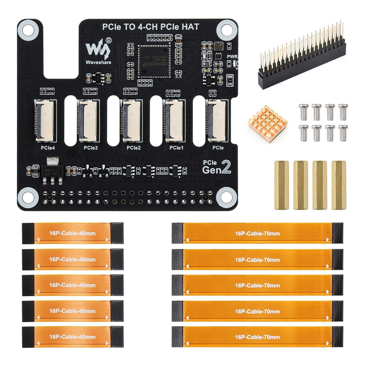 Waveshare Four-Channel PCIe FFC Expansion Board, Designed for Raspberry Pi 5, Supports Stacking Multiple PCIe HAT Modules