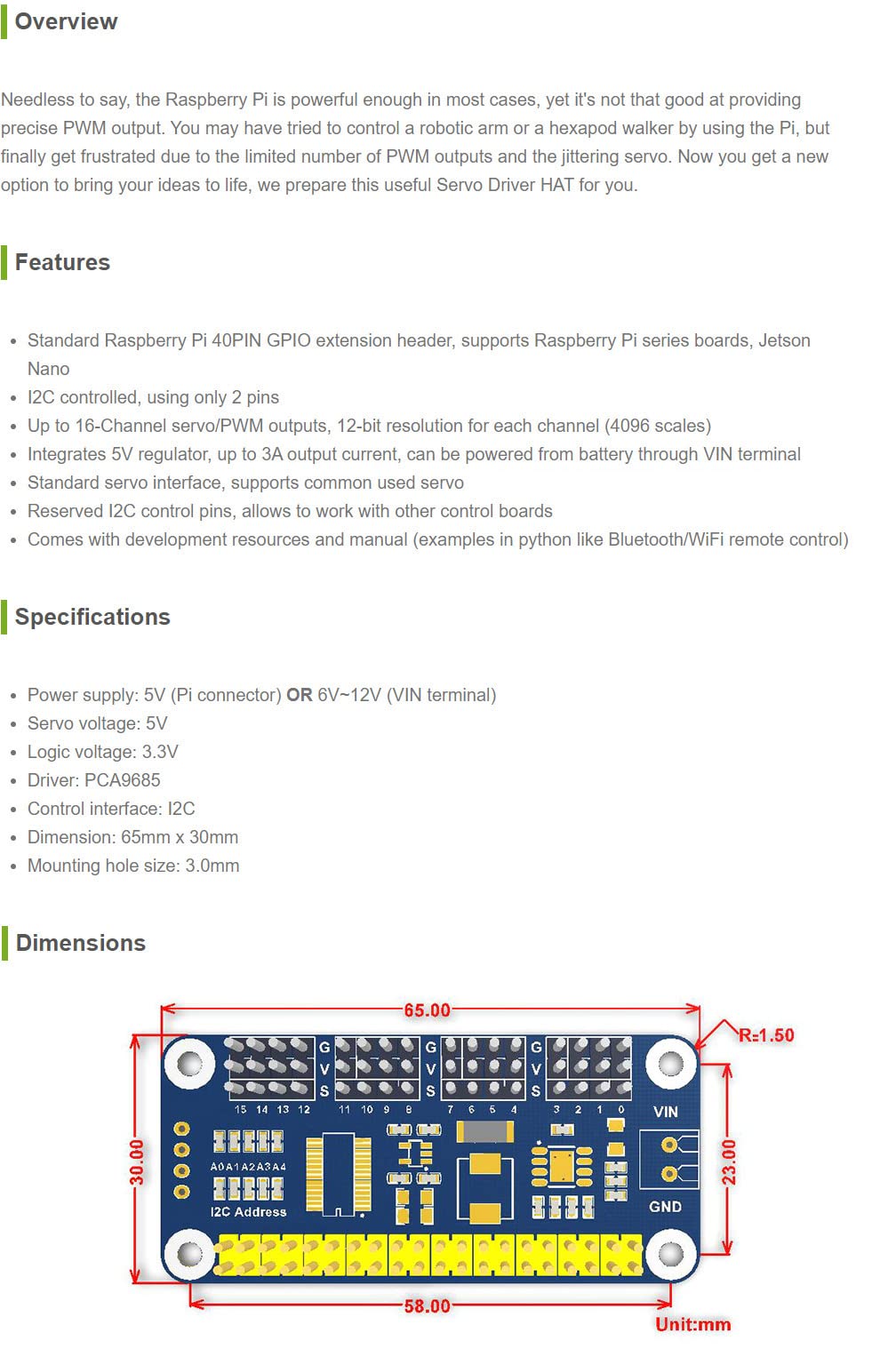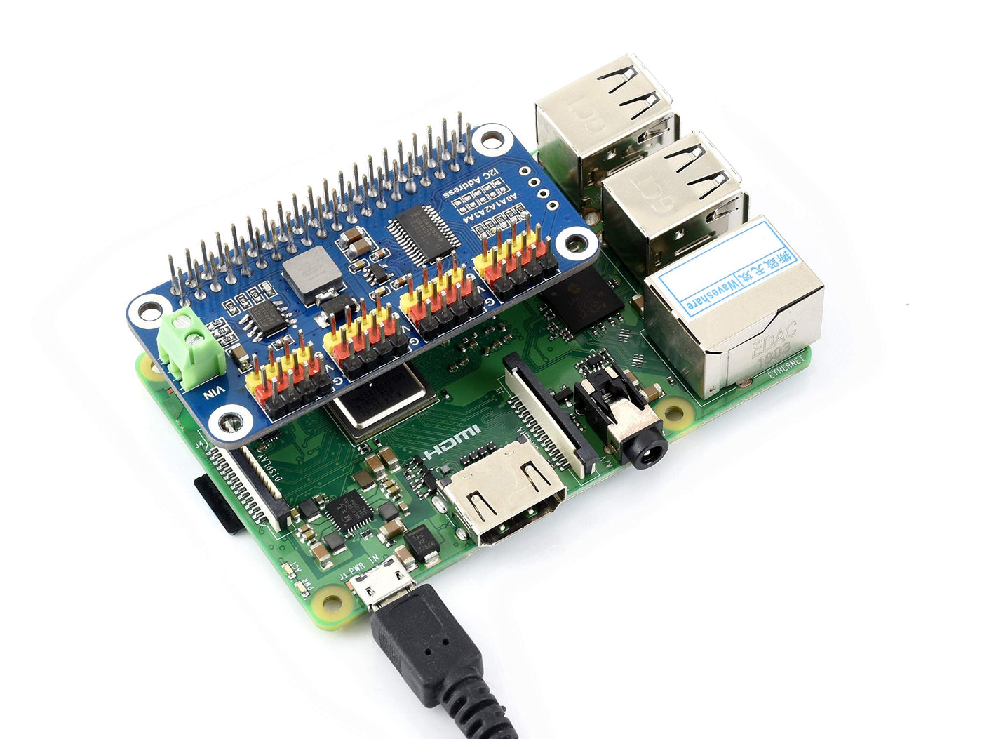 waveshare Servo Driver Hat for Raspberry Pi 3B+ 3B 2B Zero WH Zero W Zero 16 Channel PWM Outputs 12 Bit Resolution I2C Interface