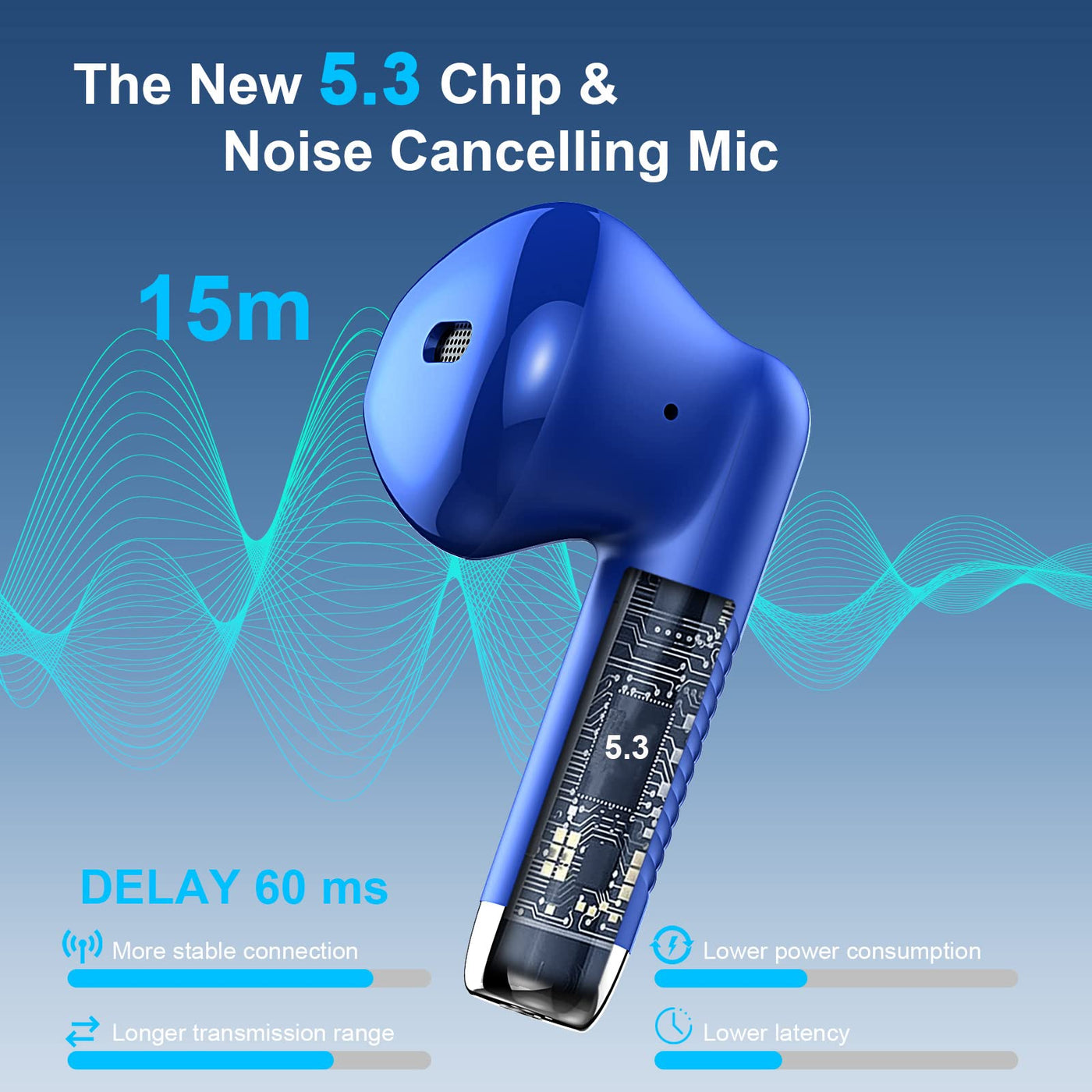 - Bluetooth 5.3, effortless pairing: the advanced Bluetooth 5.3 technology delivers a stable, low-latency wireless connection for high-quality sound(music or call). Also, the Bluetooth earbuds can connect automatically to the Bluetooth of your mobile phone when you open the charging box, avoiding complicated operations and saving waiting time.