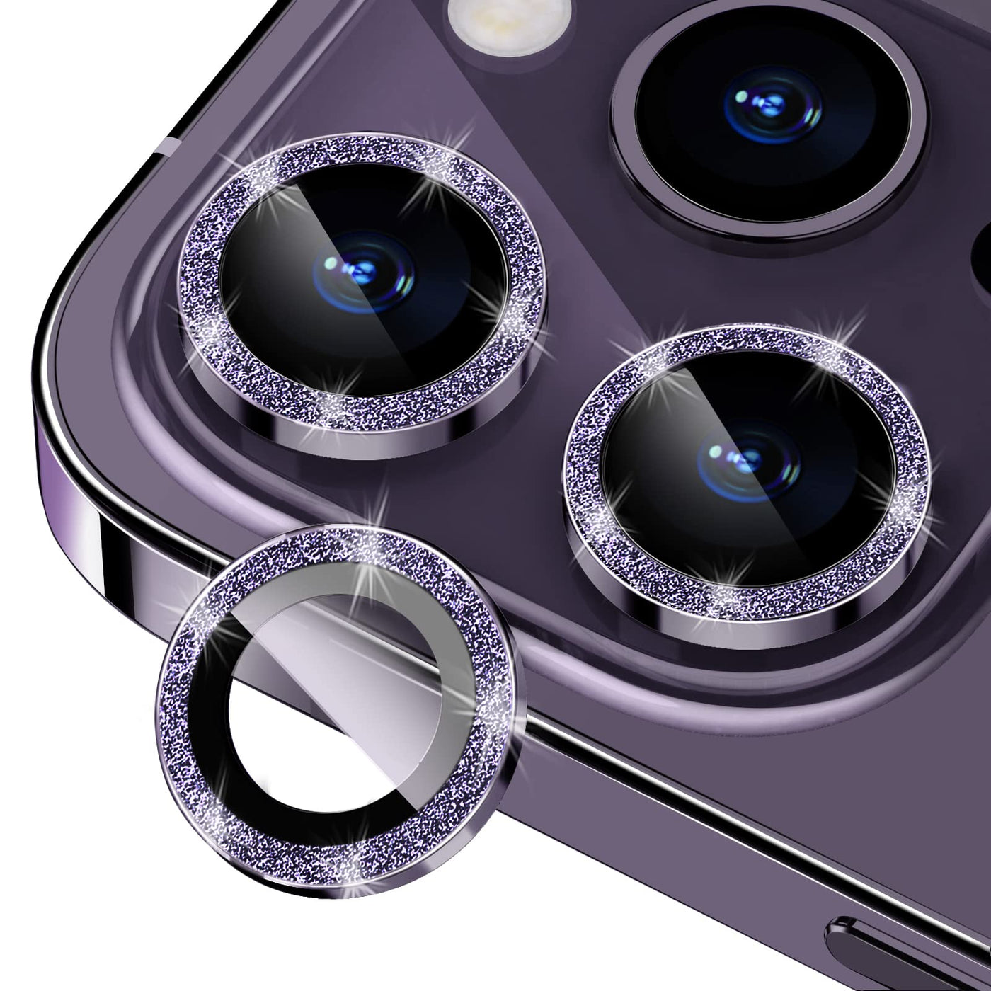 Xfilm Camera Lens Protector for iPhone 14 Pro/iPhone 14 Pro Max, Bling Glitter 9H Hardness Drop-Proof Metal Individual Ring Protector, Strong Adsorption, Case Friendly (Deep Purple Glitter) Deep Purple Glitter