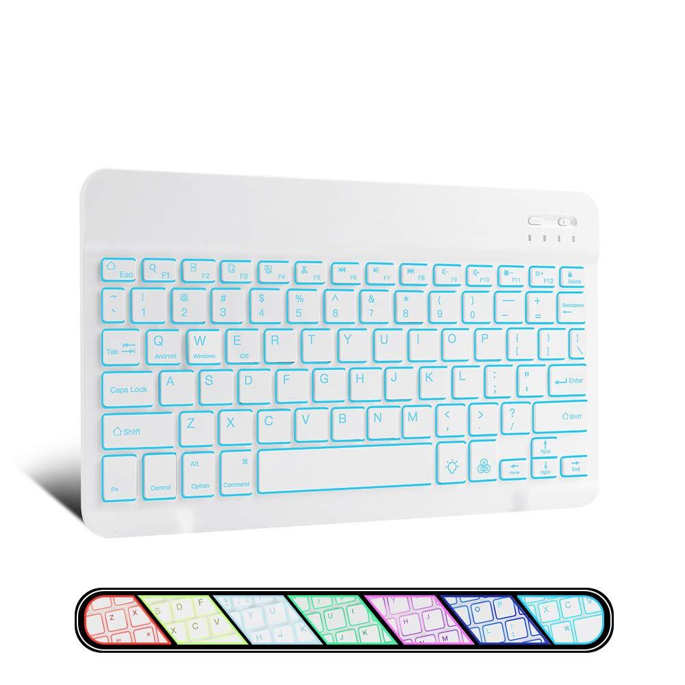 XIWMIX Ultra-Slim Wireless Bluetooth Keyboard - 7 Colors Backlit Universal Rechargeable Keyboard Compatible with iPad Pro/iPad Air/iPad 9.7/iPad 10.2/iPad Mini and Other iOS Android Windows Devices 1-white backlit