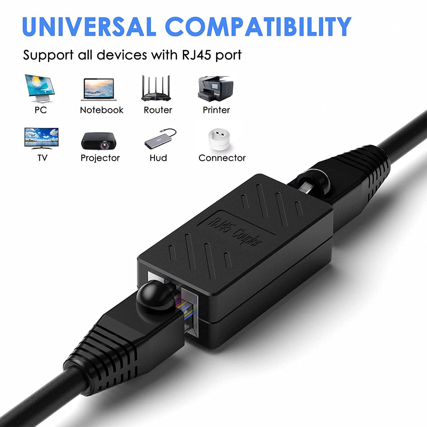 - 10 Gigabit Fast speeds, Ethernet cable coupler can speed up to 10Gbps for connecting Cat7 or Cat6 ethernet cables.