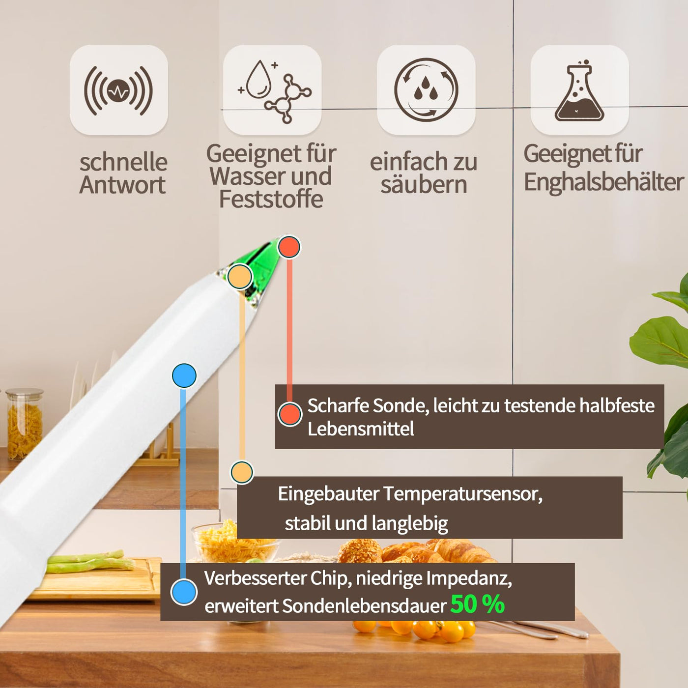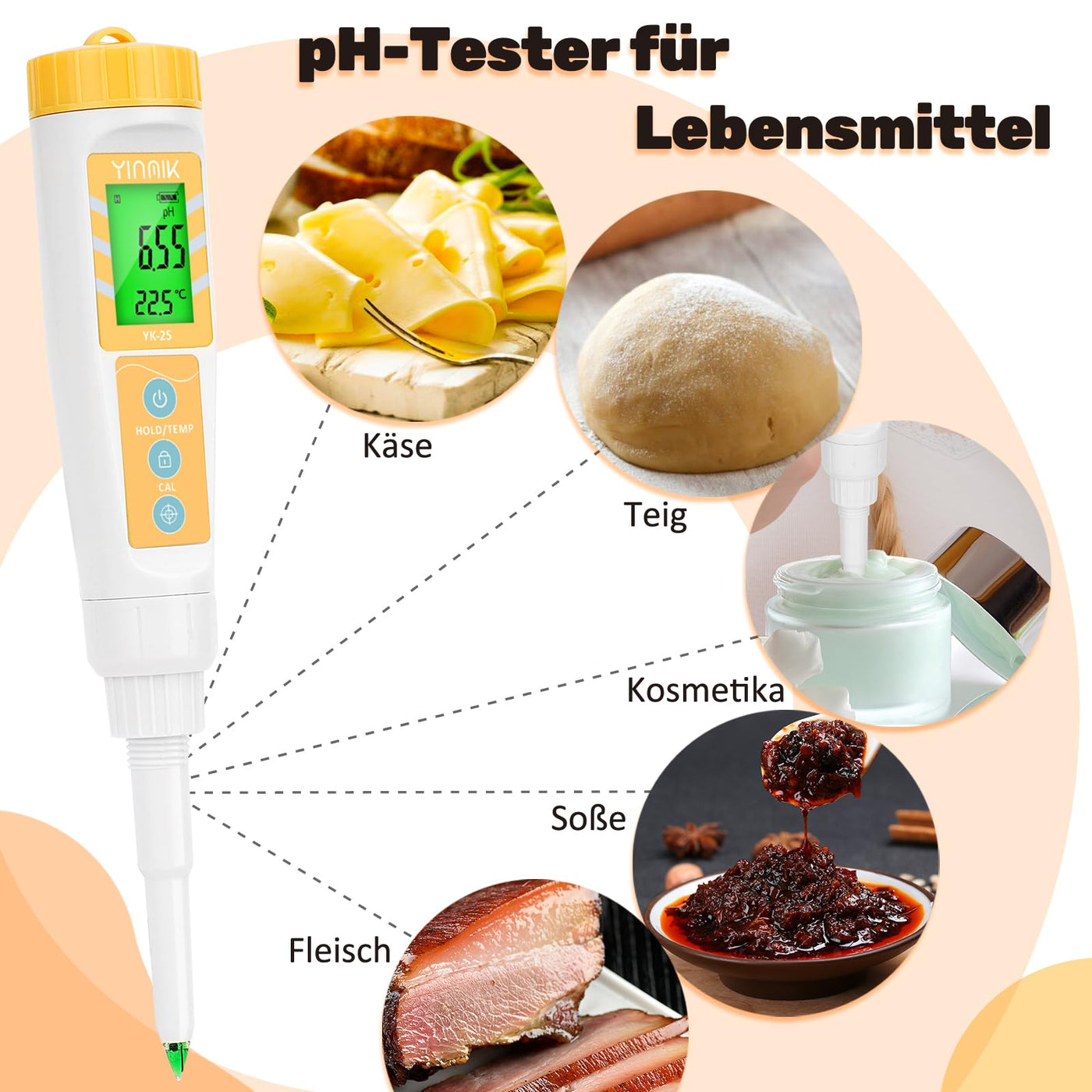 YINMIK digital pH meter for food, sourdough and bread dough pH meter, checking the pH value of fermenting sausages and salami, pH tester for solid and liquid soft soil samples