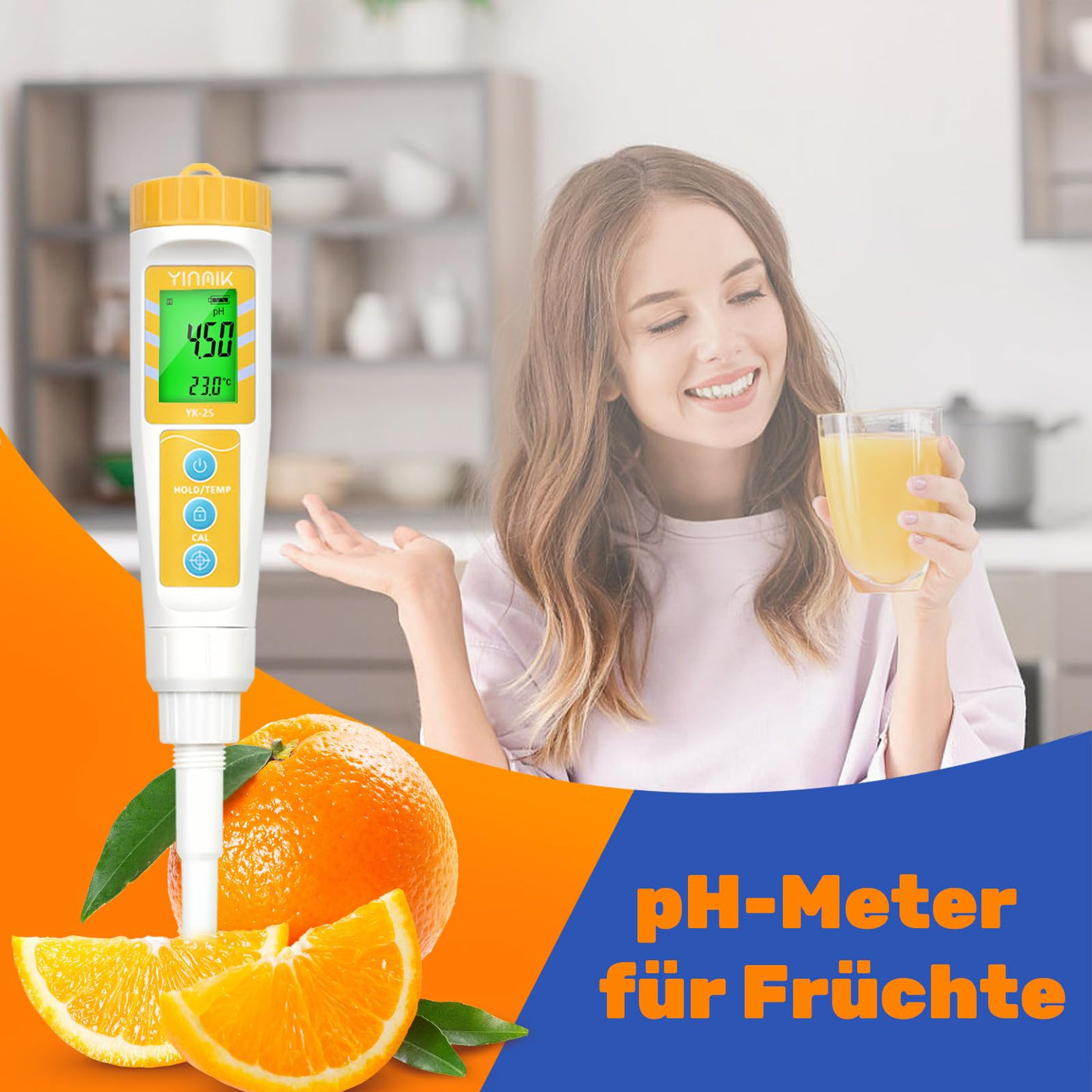 - Food pH meter: Digital pH meters can not only be used for testing semi-solid foods such as Cheese, sausage, meat, sushi rice, jams, fermented sauces, chili sauces, fruits and other semi-solid foods, but also for testing measurement of fermented wine, beer, juice, fruit, drinking water and other liquids. YK-2S with pH 0.0014.00 and resolution 0.01 is an essential tool to meet your measurement needs.