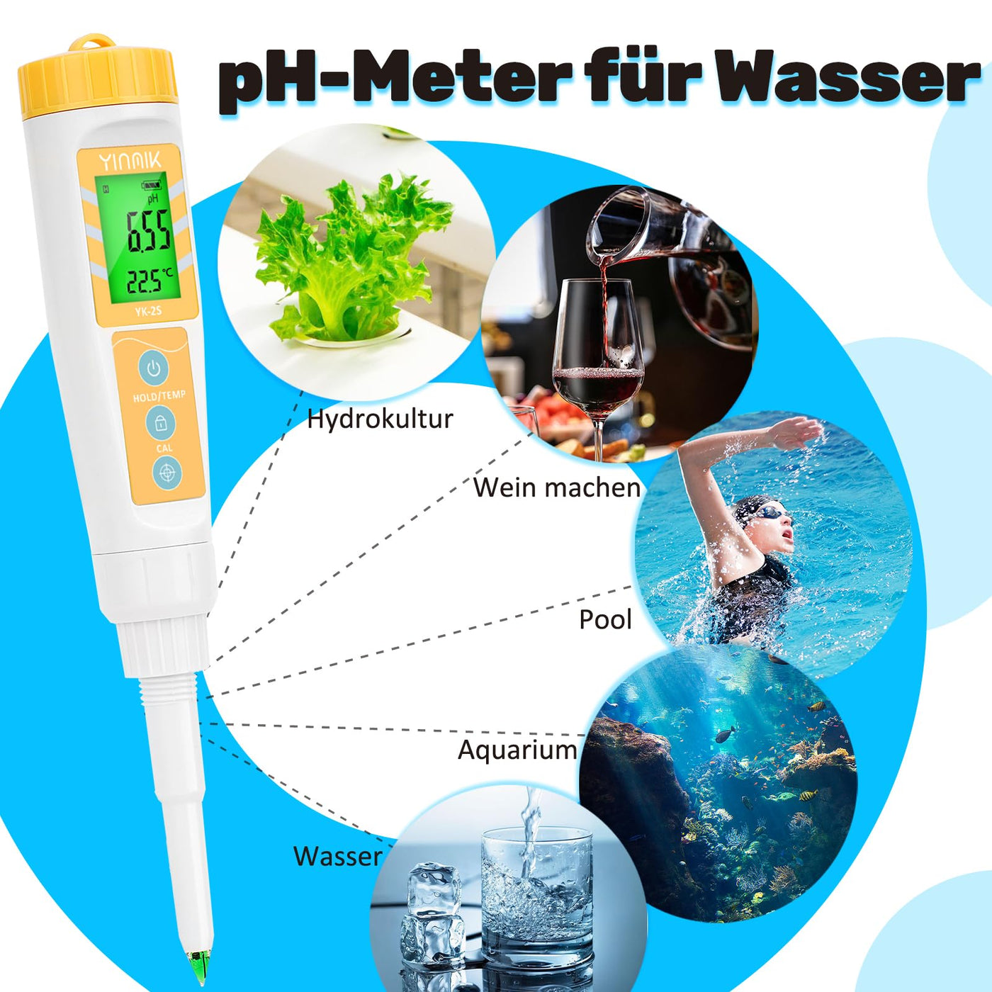 - pH meter for dough production: Fermented dough with a pH value between 5.0-6.0 pH makes the bread or food taste better. YINMIK pH tester with pointed design pH electrode, very suitable for measuring dough; Using YK-2S pH meter to measure pH in a large number of fermentation steps will definitely prepare more delicious food!