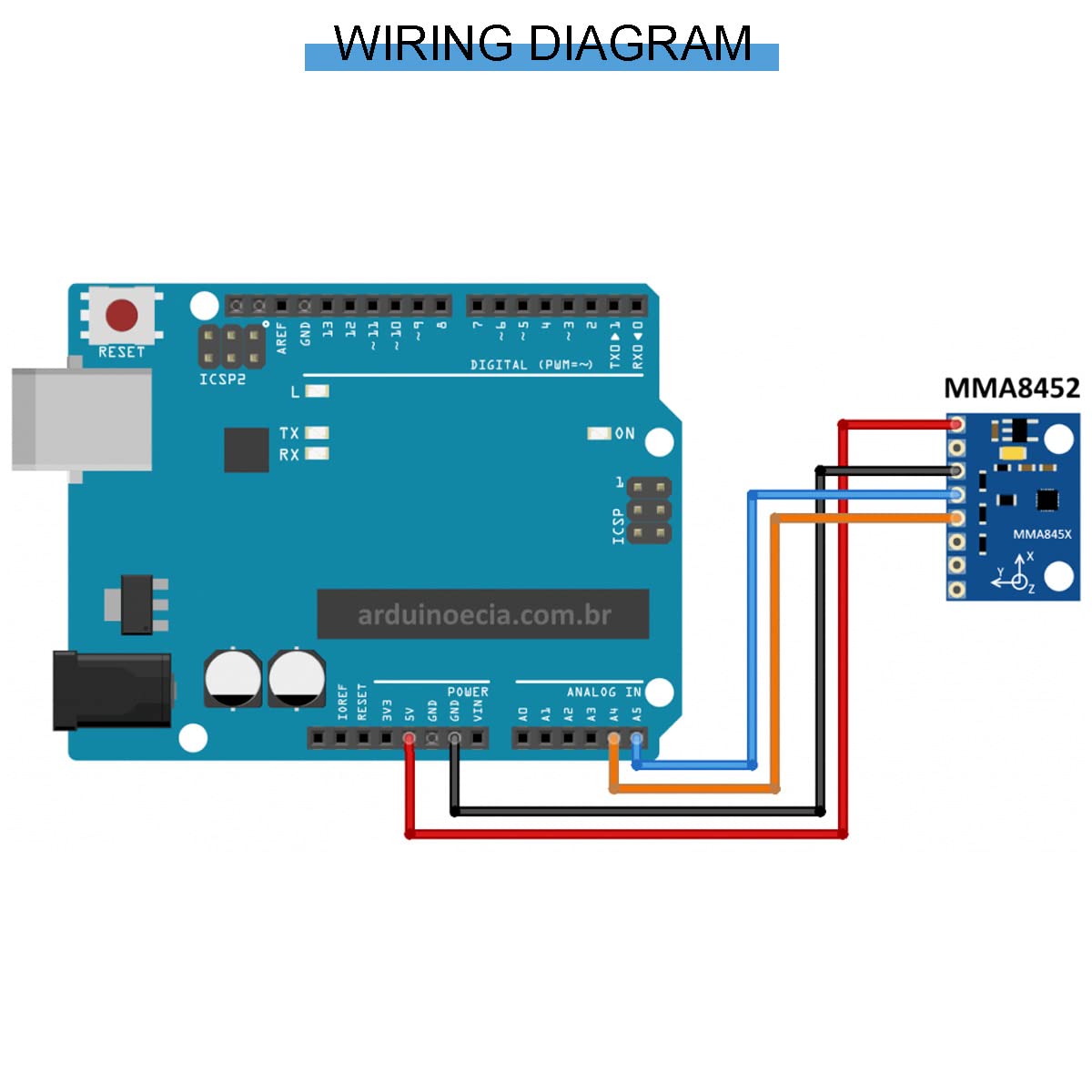 Product description Characteristic Module model: GY-45 Power supply : 3-5v (communication is fully compatible with 5v working system) Supply voltage: 1.95 V to 3.6 V Interface voltage: 1.6 V to 3.6 V ±2g/±4g/±8g dynamic range optional Output data rate (ODR) range: 1.56 Hz to 800 Hz Noise: 99μg/√Hz 12-bit and 8-bit digital output I2C digital output interface (when the pull-up resistance is 4.7 kΩ, the frequency can reach 2.25 MHz) 2 programmable interrupt pins for 6 interrupt sources 3 embedded channels for motion detection Free fall or motion detection: 1 channel – Pulse detection: 1 channel – Shake detection: 1 channel Orientation (horizontal/longitudinal) detection with set hysteresis compensation ODR of automatic wake-up and automatic sleep can be changed automatically High -pass filtered data can be output in real time Self-test RoHS compliant Power consumption: 6 μA – 165 μA Package Includes: 4 x MMA8452 Module