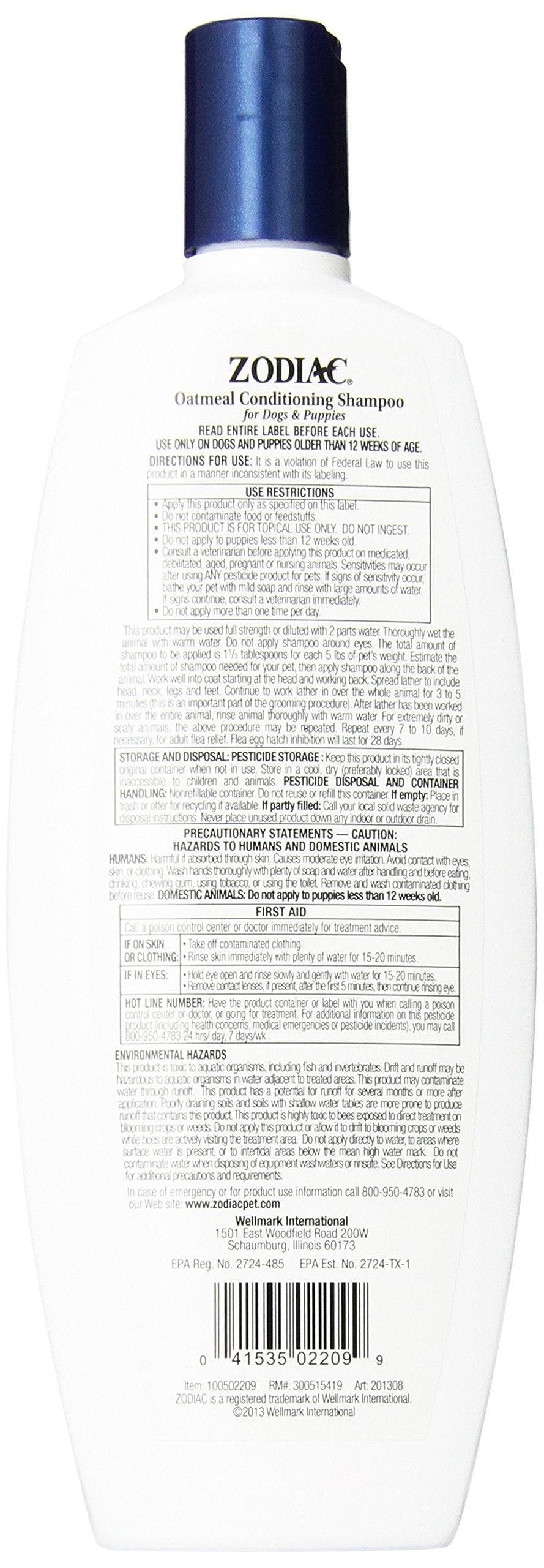 Zodiac Oatmeal Conditioning Shampoo for Dogs & Puppies, 18-ounce